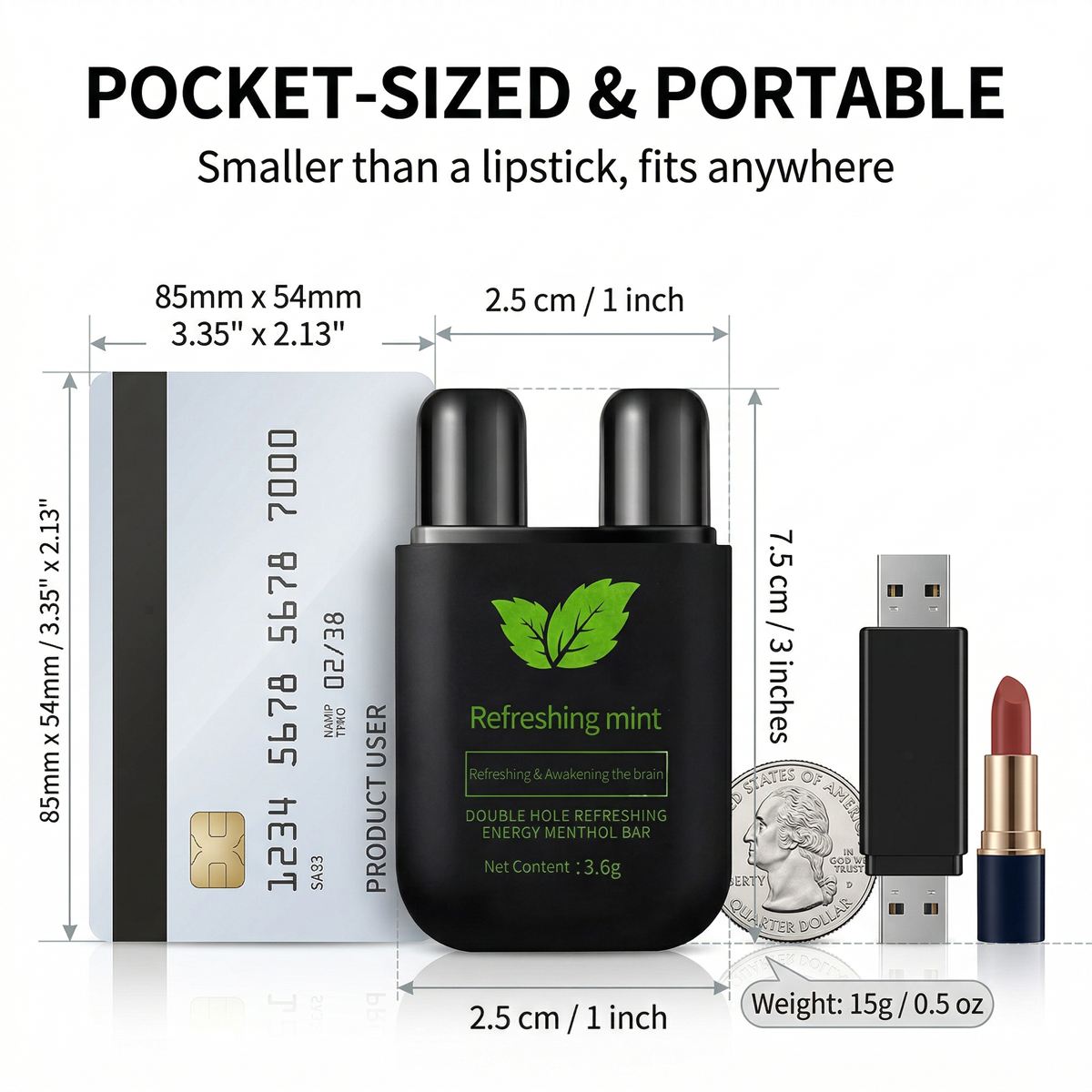 Slips into any pocket, bag, or glove compartment. No batteries, no water, no mess. Just twist, inhale, and go. Perfect for travel, commutes, or a midday refresh.