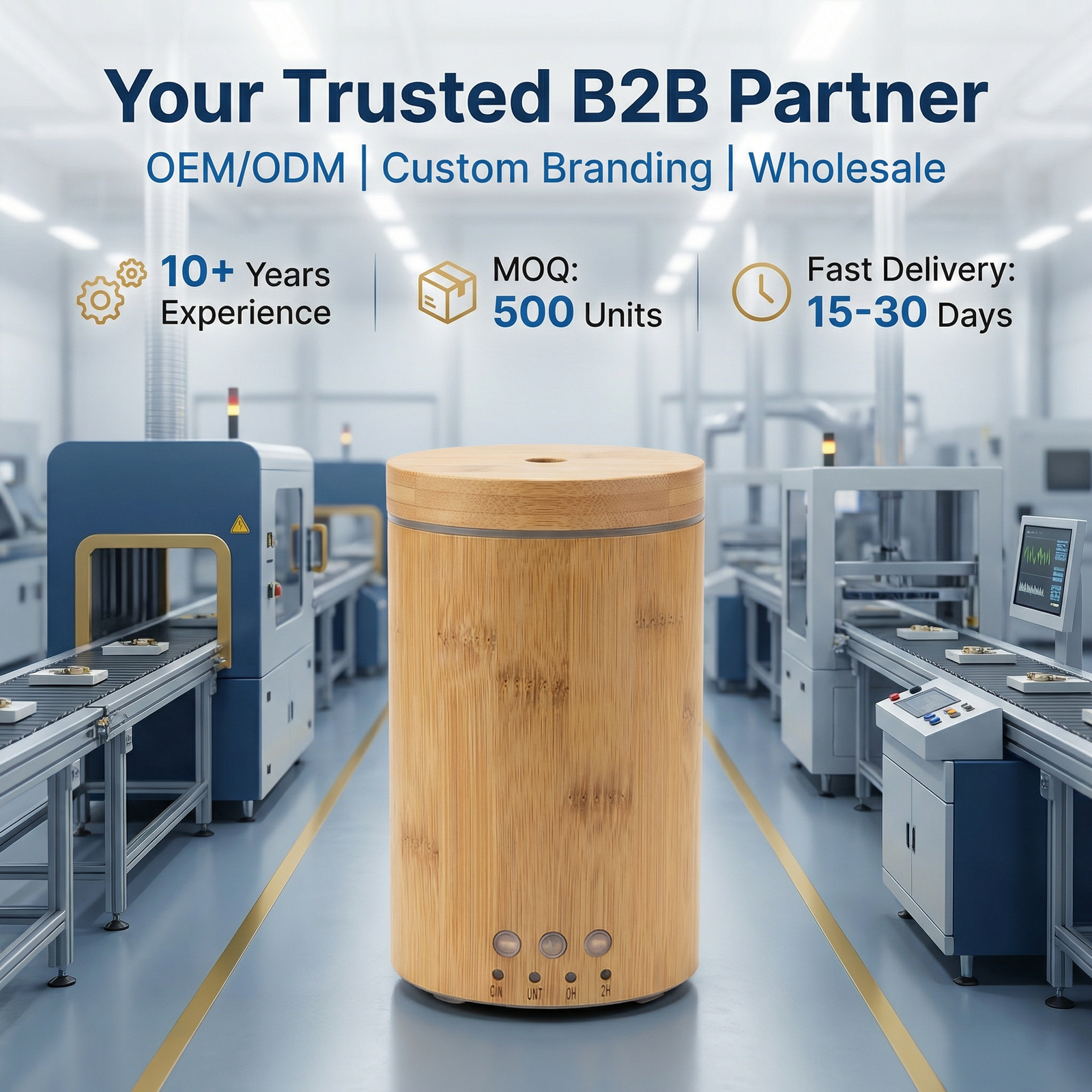 Stop selling commodities. Start selling a sensory experience. Our 100% natural bamboo aroma diffuser OEM service can help you provide your customers with 100% satisfied experience. Request a free quote today.