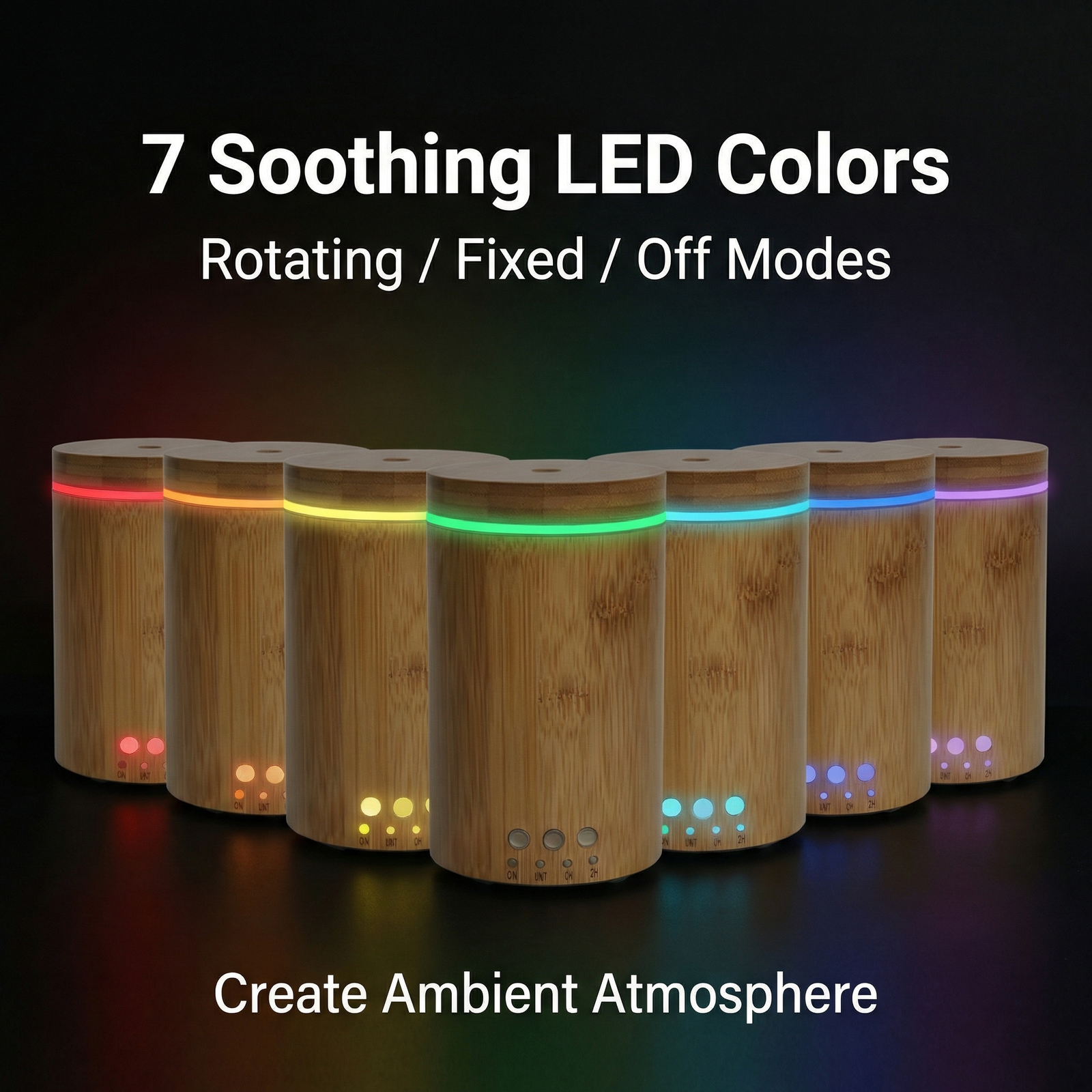 Ultrasonic Real Bamboo Aroma Diffuser, Extremely Quiet, 7 Color LED Bamboo Diffuser | Bamboo Aromatherapy Diffuser Wholesale & OEM/ODM