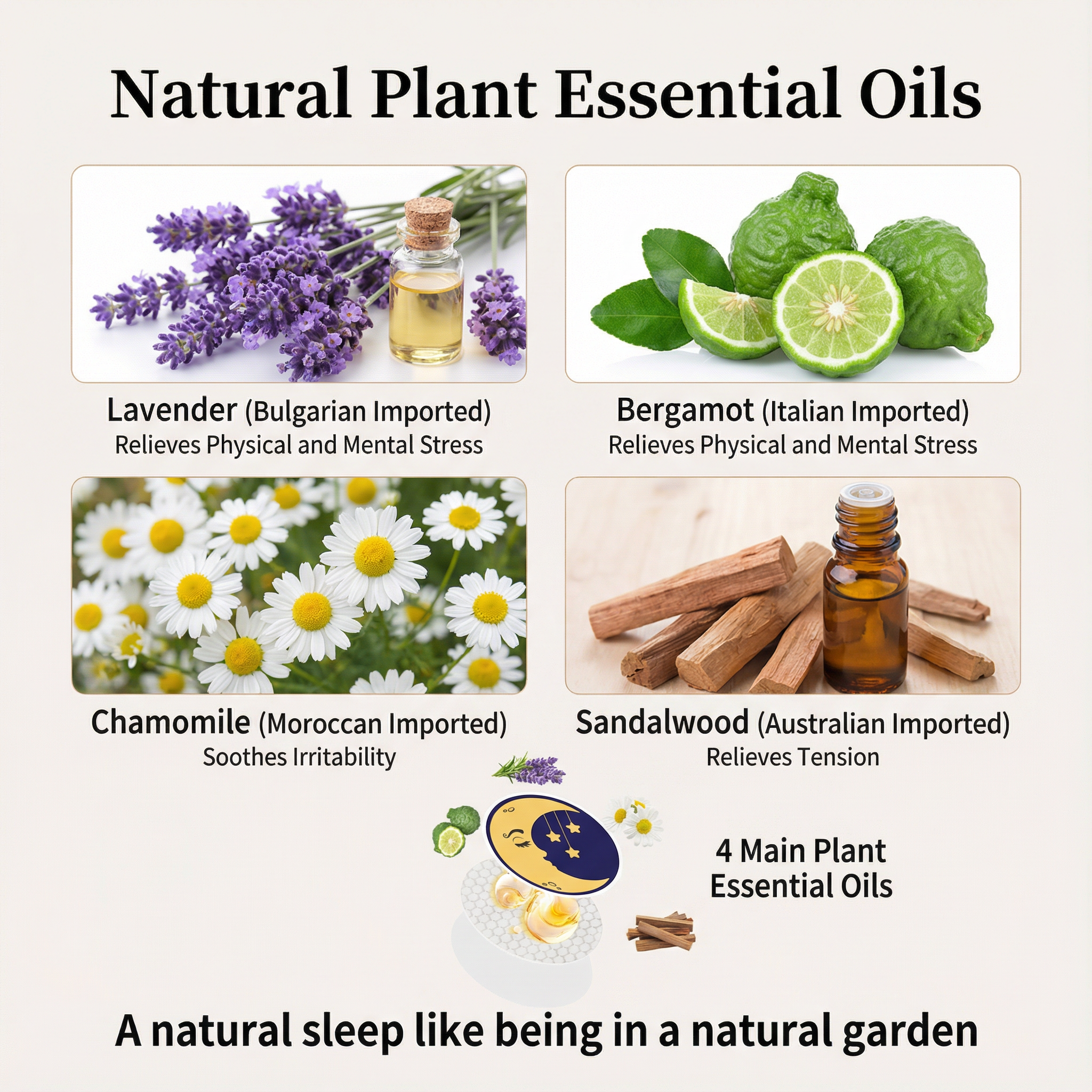Breathe easy. Our potent blends contain only natural essential oils like Lavender, Bergamot, Sandalwood, and Chamomile. No synthetic fragrances, no hidden drugs, just nature’s own calming botanicals working in harmony with your body.