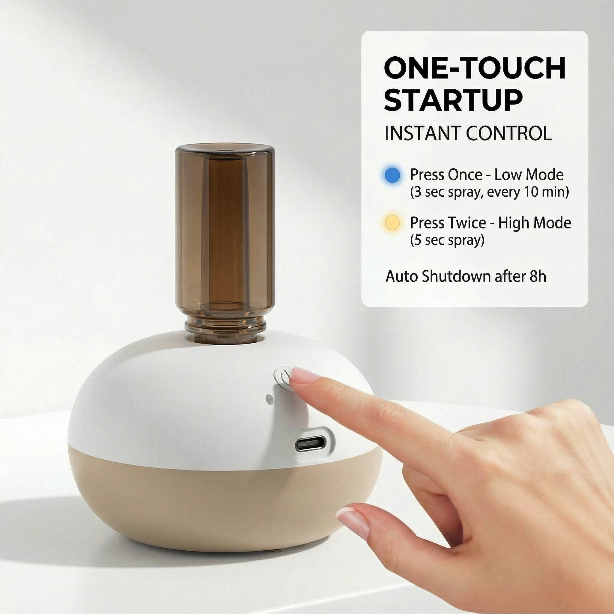 - One-Touch Simplicity: No complicated setup. Just press the top to start diffusing. Press again to switch modes, and hold to turn off. Instant ambiance at your fingertips.