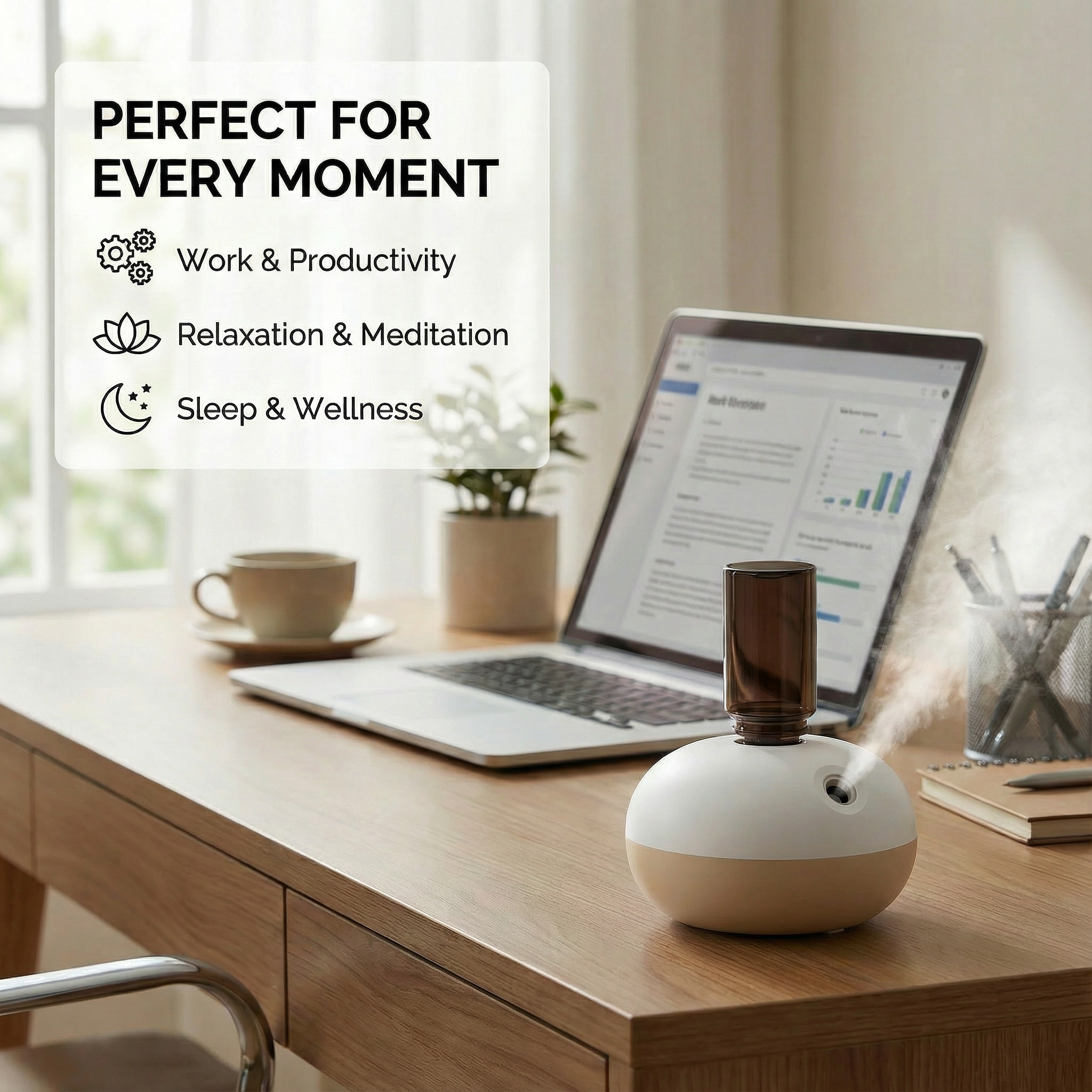 - Versatile for Every Space: Use it at home, in the office, your bedroom, a hotel room, or your car. Anywhere with a USB power source (power bank, laptop, car charger) becomes a fresh, fragrant oasis.