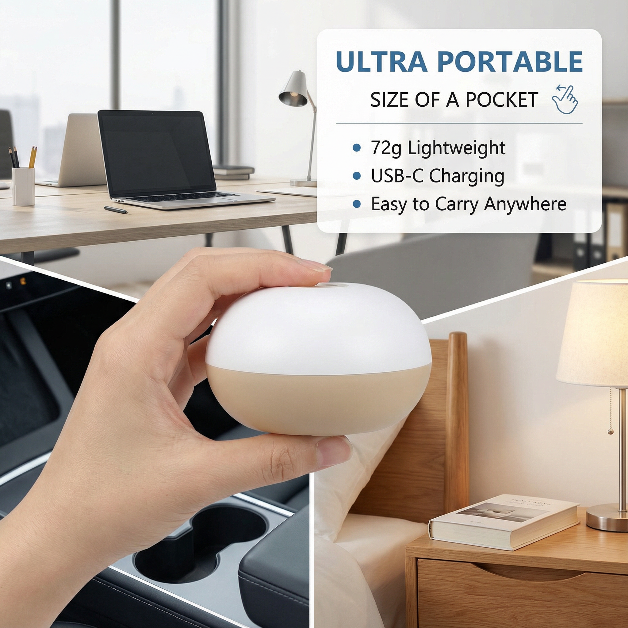 - Ultra-Portable with Long-Lasting Battery: Compact enough to fit in your bag or car cup holder. Powered by a built-in rechargeable battery via a universal USB port, it runs for up to 10 days on a single charge—freeing you from constant recharging.